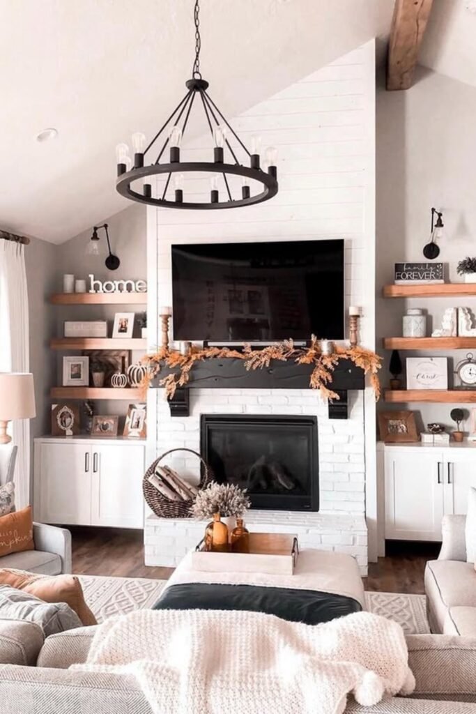 You might add a layered fall garland, a woven basket, and soft neutral textiles, and you’ll notice how the warmth comes without overwhelming the space.