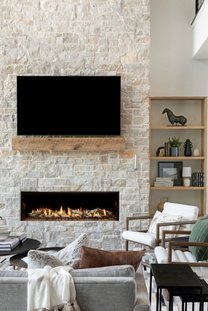 When you pair a stone fireplace with layered textures, you will see how depth appears naturally.