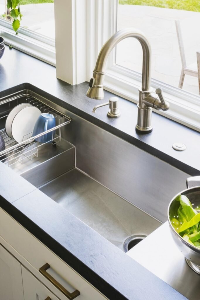You can go for a double bowl sink if you like soaking dishes on one side and rinsing on the other, but you should know that double bowls can feel cramped with oversized items.