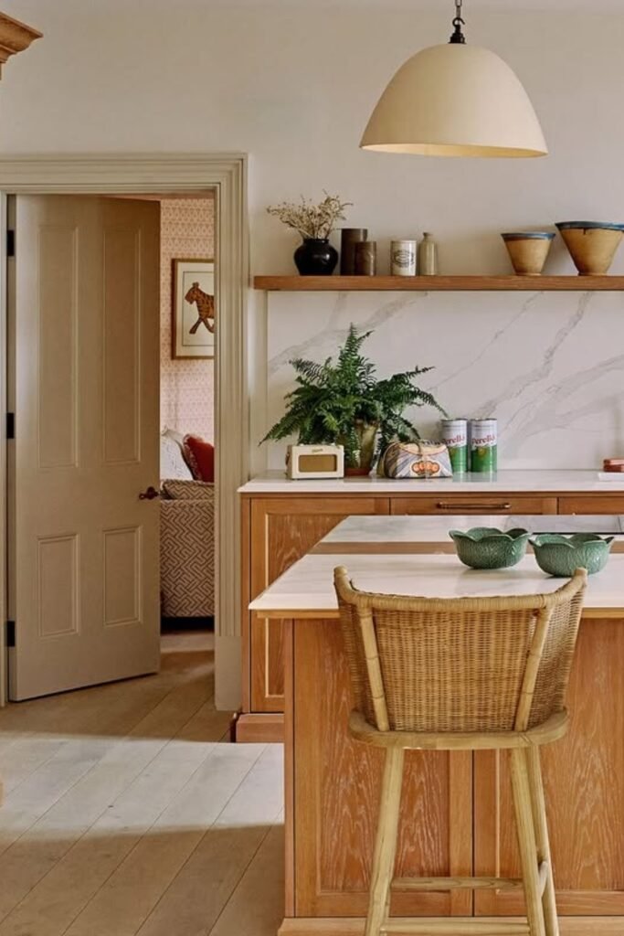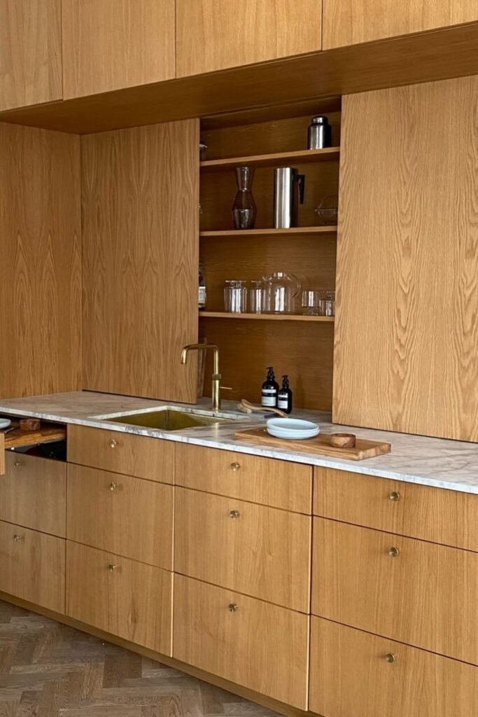 The pale wood keeps the space soft and open, which is ideal for smaller kitchens or rooms that don’t get a lot of natural light.